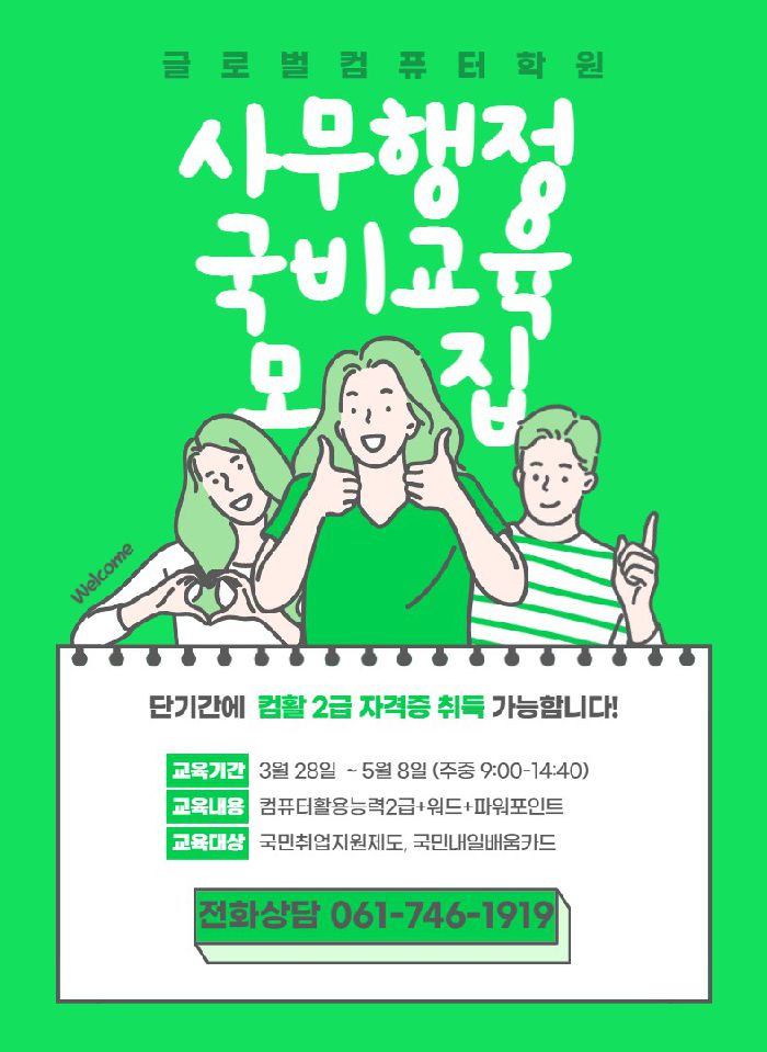 3월 사무행정실무(컴활2급+워드,파워포인트,엑세스) 개강모집